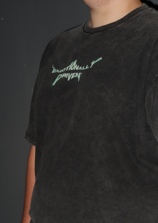 BLACK ACID WASH EMOTIONALLY DRIVEN T-SHIRT